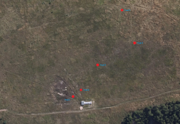 Schéma rozmístění jednotlivých IQRF nodů (stav k 10.9.2015)