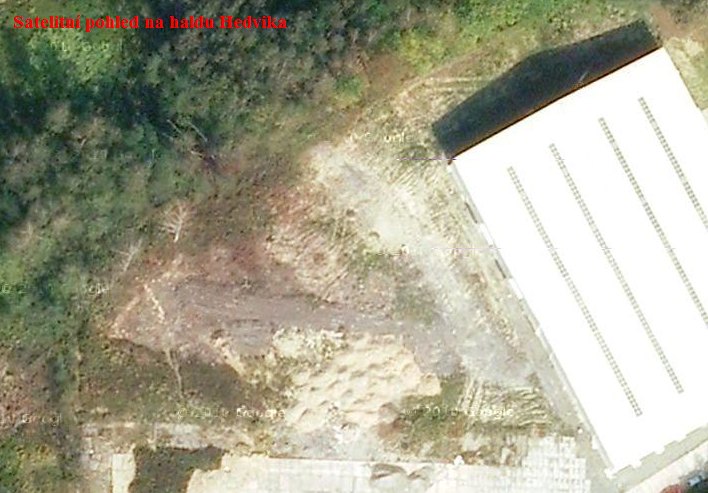 Satelitní pohled na území zasažené termickým procesem na haldě Hedvika